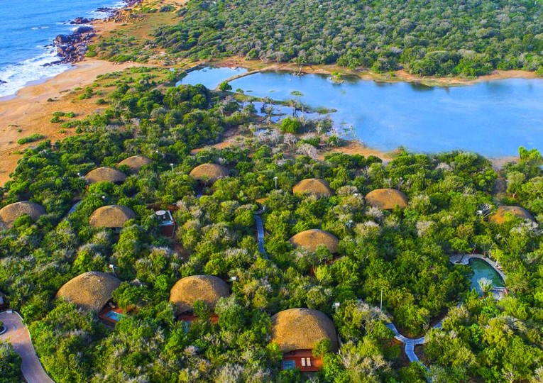 Die luxuriösen Chena Huts liegen eingebettet inmitten einer wunderschönen, tropischen und wilden Natur direkt am Eingang des belebten Yala Nationalparks mit Blick auf den Ozean. Das zur bekannten Hotelgruppe Uga Escapes gehörende Resort steht für einen hohen ökologischen Standard, Nachhaltigkeit mit Entspannungsfaktor.