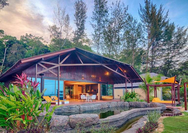 Das Borneo Eagle Resort ist eine luxuriöse 5-Sterne-Unterkunft auf der unbewohnten Insel Pulau Tiga. Es schmiegt sich perfekt in die Umgebung ein und liegt direkt an einem rund einen Kilometer langen weißen Sandstrand.