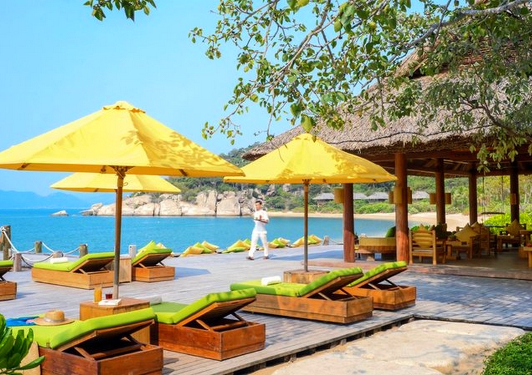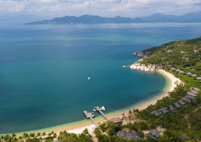 Die weitläufige Anlage liegt auf einer Landzunge in der schönen Ninh Van-Bucht, direkt am 1 km langen, feinsandigen Strand mit Regenwald und Bergen im Hintergrund. Das Resort ist ausschließlich per Boot erreichbar und bietet viel Privatsphäre und höchsten Komfort.