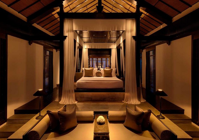 Die 100 sehr großzügig gestalteten Villen liegen alle zur Meerseite in fünf Halbkreisen entlang des Strandes in einem 35 Hektar großen Garten. Zu den Einrichtungen gehören ein Schlafzimmer mit Kingsize-Bett, Bad mit kleinem Garten und Außendusche, Bademantel, Föhn, TV (Flachbildschirm), Telefon, WLAN (ohne Gebühr), BOSE-Sound-System, CD-/DVD-Player, iPod-Dockingstation, Minibar (ausgewählte alkoholfreie Getränke inklusive), Tee-/Kaffeezubereiter, Safe und Klimaanlage. Zu jeder Villa gehört eine eigene Terrasse mit Sitzgelegenheit. Fast alle Villen bieten einen herrlichen Blick auf das Südchinesische Meer.