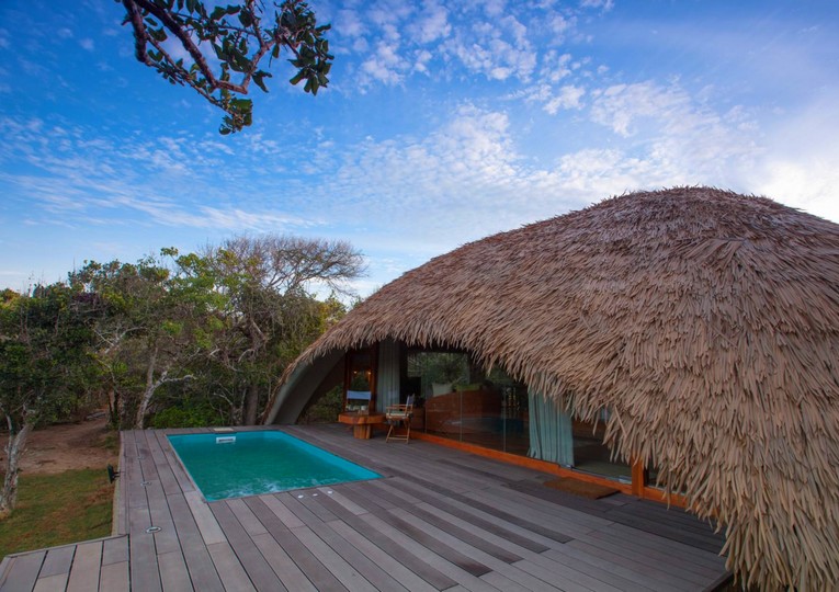 Die luxuriösen Chena Huts liegen eingebettet inmitten einer wunderschönen, tropischen und wilden Natur direkt am Eingang des belebten Yala Nationalparks mit Blick auf den Ozean. Das zur bekannten Hotelgruppe Uga Escapes gehörende Resort steht für einen hohen ökologischen Standard, Nachhaltigkeit mit Entspannungsfaktor.
