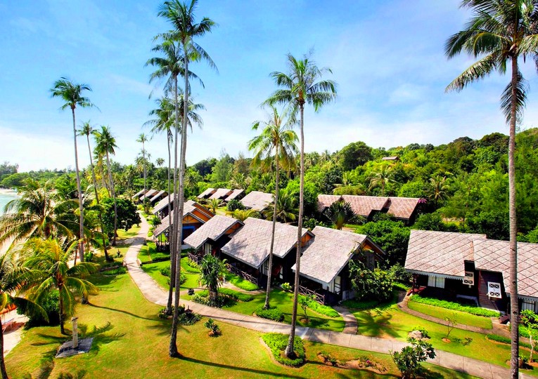 Hotel: Resort im tropischen Regenwald mit 3 Restaurants, 2 Swimmingpools, Einkaufsarkade. Liegen und Sonnenschirme am Pool und am Sandstrand.