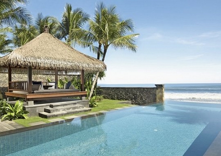 Genießen Sie an Balis Südwestküste unvergessliche Momente in diesem luxuriösen Boutique-Resort. Es ist nur durch den traumhaften tropischen Garten vom langen Strand getrennt.