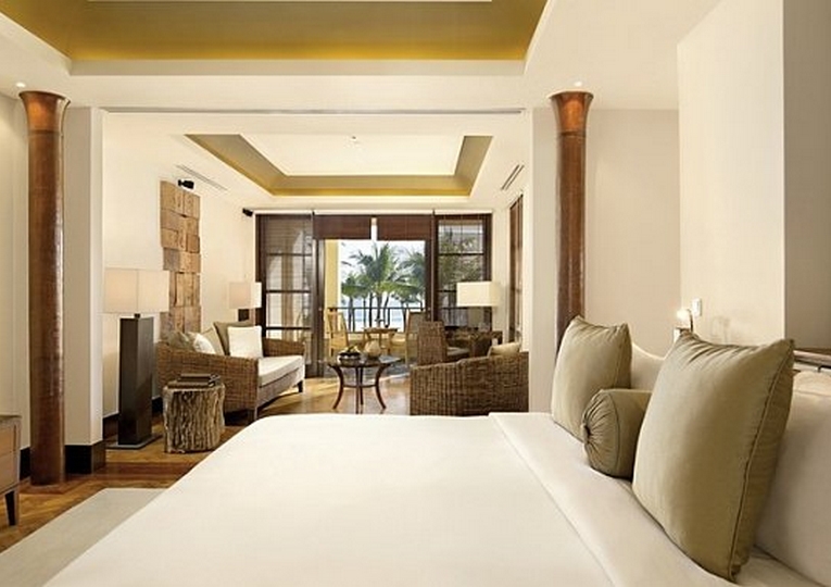 One Bedroom Deluxe Suite (36) ca. 110 qm (ca. 80 qm Wohnbereich): Mit abgetrenntem Wohn- und Essbereich, Balkon mit Tagesbett und Meerblick.