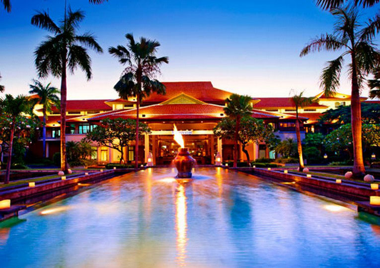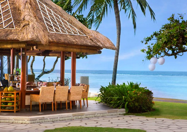 Entfliehen Sie dem Alltag und entspannen Sie am weißen Sandstrand von Nusa Dua. Im bezaubernden Hotelgarten spenden Ihnen Kokospalmen Schatten.