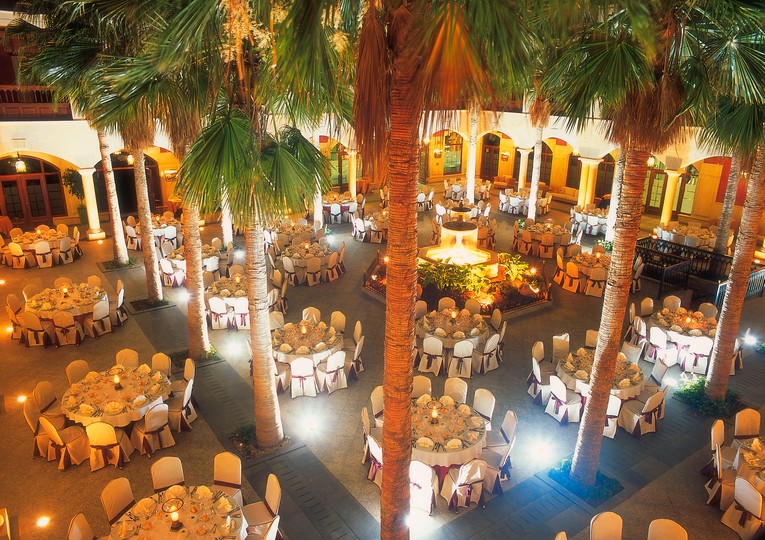 Ausstattung: luxuriöses, im kanarischen Stil erbautes Hotel, mit Restaurant (HP = Frühstücks- und Abendbuffet oder -menü), Caféteria, Bar, Weinkeller, Lift. Swimmingpool, Kinderbecken, Sonnenschirme und -liegen am Pool und Strand inklusive. Gegen Gebühr: Whirlpool, Sauna, Fitnessraum. Bibliothek mit Computerecke. Geschäfte. Parkplatz, Garage.