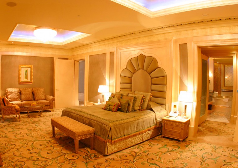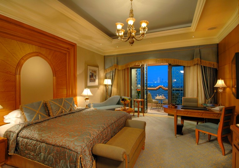Die 302 Zimmer und 92 Suiten verbinden Luxus und arabische Pracht mit modernster Technik und sind gleichmäßig über den West- und den Ostflügel verteilt. Beide Flügel sind mit Zugang zum Strand, Swimmingpool und Fitness-Center ausgestattet. Mit Bad, Dusche, Föhn, Bademantel, LCD-TV, Telefon, DVD-Player, WLAN (ohne Gebühr), Klimaanlage, Minibar (ausgewählte Softdrinks inklusive), Safe und Balkon oder Terrasse mit direktem oder seitlichem Meerblick. 24-Stunden-Butler-Service.