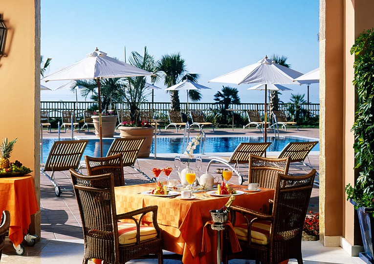 Sport, Unterhaltung: in der Außenanlage 2 große Swimmingpools, Sonnenterrasse mit Liegen, Sonnenschirmen, großes Fitnesscenter inklusive. Gegen Gebühr: Liegen und Sonnenschirme am Strand, modern-exklusives Thalasso-Spa auf ca. 1.400 qm, Meerwasserhallenbad, Whirlpool, Dampfbad, Saunen, Anwendungen, Golfplätze in der Umgebung. Gästeprogramm.