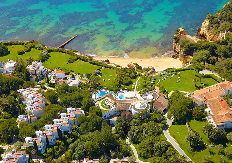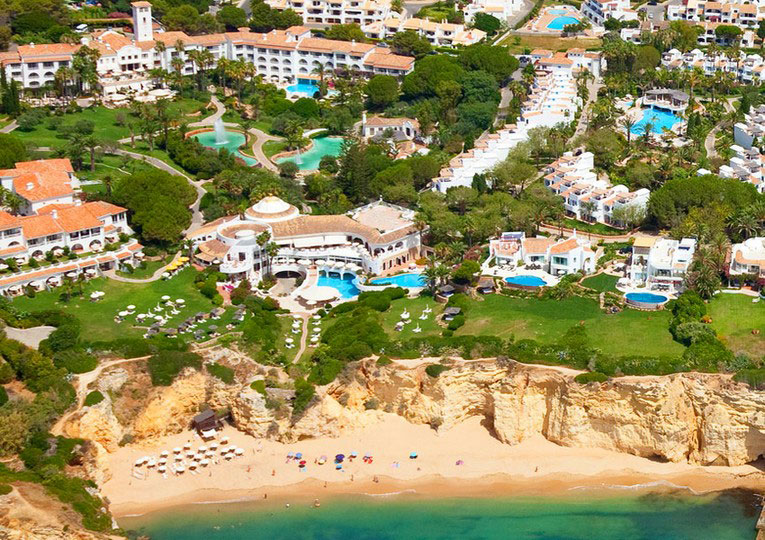Direkt an der Steilküste gelegenes renommiertes Ferienresort. Die Gebäude sind landestypisch der maurisch gefärbten Architektur angepasst und fügen sich harmonisch in die Landschaft ein. Die 22 ha große Anlage besteht aus dem modernen Hauptgebäude, den 2-geschossigen Reihen-Suiten "Oasis Parc" (ca. 270 m zur Steilküste/Strand), der im Stil eines Herrenhauses gestalteten "Residence" (nur für Erwachsene) und dem Spa- und Wellness-Bereich. Verschiedene Restaurants, 4 Swimmingpools (2 beheizbare Außenpools und ein beheizter Innen-/Außenpool), Sonnenterrasse, Liegestühle, Sonnenschirme, 3 Kinderpools, Kid's Club (4 bis 11 Jahre, ohne Gebühr), Kinderkrippe (6 Monate bis 3 Jahre, gegen Gebühr), "Piazzetta" (Dorfplatz), VLife Boutiquen und Parkplatz. Zum öffentlichen Sandstrand sind es nur wenige Schritte (über Treppen erreichbar, Liegen und Schirme ohne Gebühr). Das hoteleigene Weingut "Herdade dos Grous" ist ca. 1,5 Stunden, der Flughafen Faro ca. 45 km entfernt.