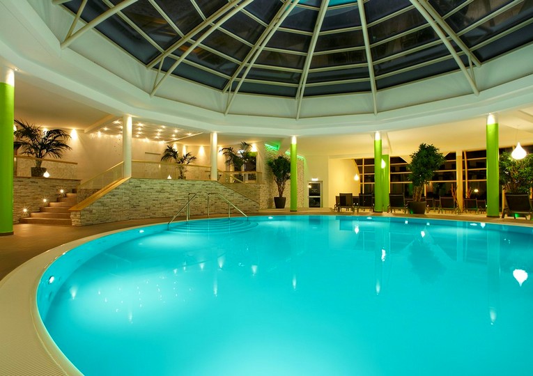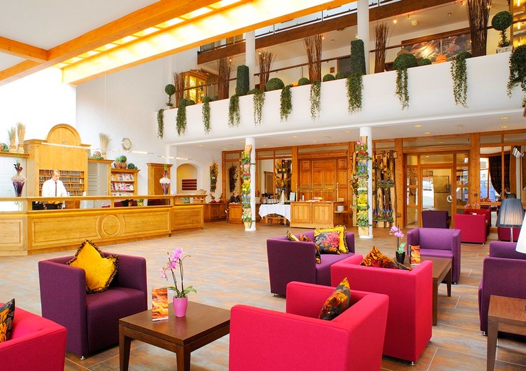 komfortables, bayerisch-traditionell eingerichtetes Hotel. Verschiedene Restaurants, Bar, Lift. Thermalswimmingpool, Liegewiese mit Liegestühlen und Sonnenschirmen, Spabereich auf 4400 qm, Thermalhallenbäder, Dampfbäder, Saunen, Trinkbrunnen, Fitnessraum inklusive. Gegen Gebühr: Solarium, Beautyfarm, Massagen, Anti-Aging-Zentrum, Arzt für Naturheilverfahren, Garage.