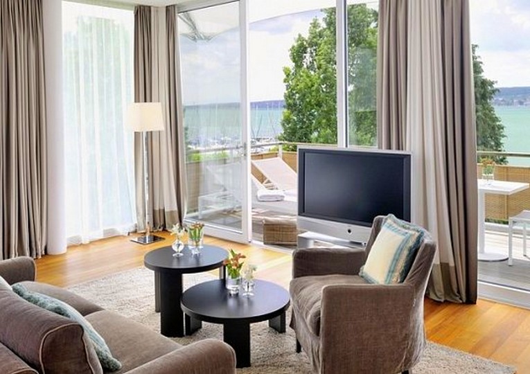 Während im modernen Seehaus bodentiefe Fenster, hohe Decken, heller Sandstein und weißer Marmor für viel Licht sorgen, bestechen die edlen Zimmer und Suiten in der Jugendstilvilla durch hochwertige Stoffe und gedeckte Farben. Die insgesamt 46 Einheiten verfügen über ein Duschbad, teilweise mit Badewanne, Föhn, Bademantel, TV, WLAN (ohne Gebühr), Minibar (ohne Gebühr), Safe und Klimaanlage.
