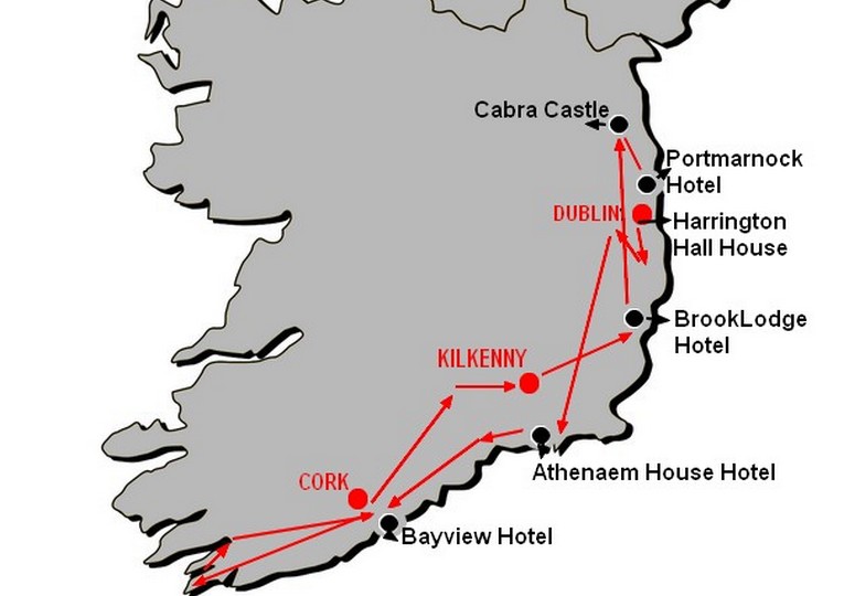 1. Tag (Dublin): Flug nach Dublin. Annahme des Mietwagens am Flughafen und Fahrt ins Zentrum Dublins. Besuch der Guiness-Brauerei und Stadtrundfahrt mit dem “HopOn-Hop-Off”-Bus. Hotelübernachtung: 4*-Harrington Hall Hotel