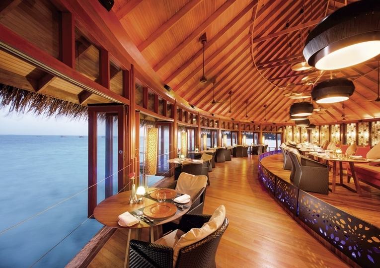 Erleben Sie einen Mix aus europäischer und asiatischer Fusion Cuisine im Spezialitätenrestaurant mit Bar The JING, das auf Stelzen über dem Meer erbaut ist. Das Hauptrestaurant The JAHAZ mit Bar bietet täglich wechselnde Themenbuffets mit internationalen Speisen. Beide Restaurants verfügen über einen Weinkeller mit einer großen Auswahl erlesener Weine. Feinste Grillgerichte offeriert das Strandrestaurant The MEERU - genießen Sie Seafood, Fisch und Fleischspezialitäten in entspannter "Barfuß"-Atmosphäre unter freiem Himmel. Zusätzlich offeriert die Kaika Sushi Bar mittags leichte Sushi Gerichte.